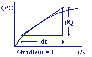 The gradient of a graph of Q against t is the current I.